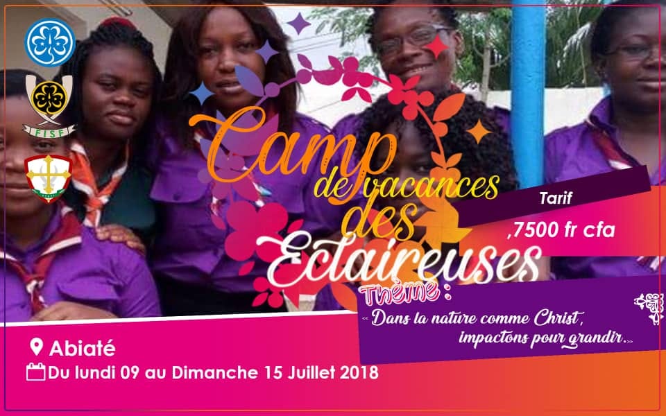 Les Eclaireuses Unionistes de Côte d'Ivoire (EUCI) organise un camp national de formation du 09 au 15 juillet 2018 pour toutes les éclaireuses et ainées à partir de 12 ans à Abiate/Songon.